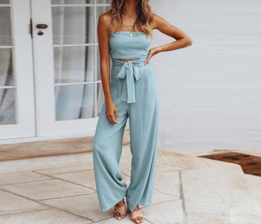 Solid Strapless Top Straight Leg Slim Jumpsuit