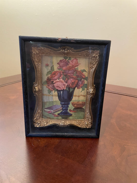 ORIGINAL ARTWORK - Painting of Flowers with rustic blue frame