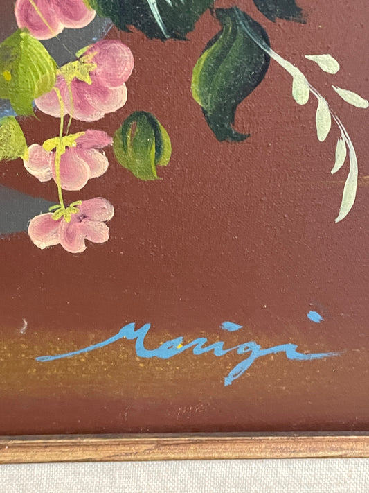 Original Artwork - Flower painting with blue wood frame