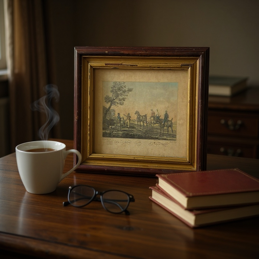 Vintage French Le Départ pour la Chasse Framed Lithograph Print