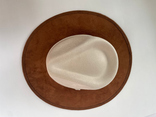 Vegan Suede Rancher Hat - Two Tone - Caramel + Ivory