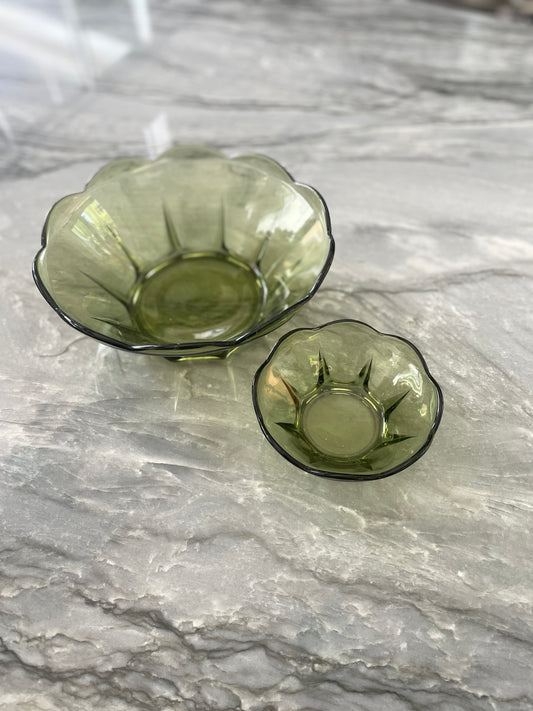 Vintage Anchor Hocking Savannah Glass Platter and Bowl Set