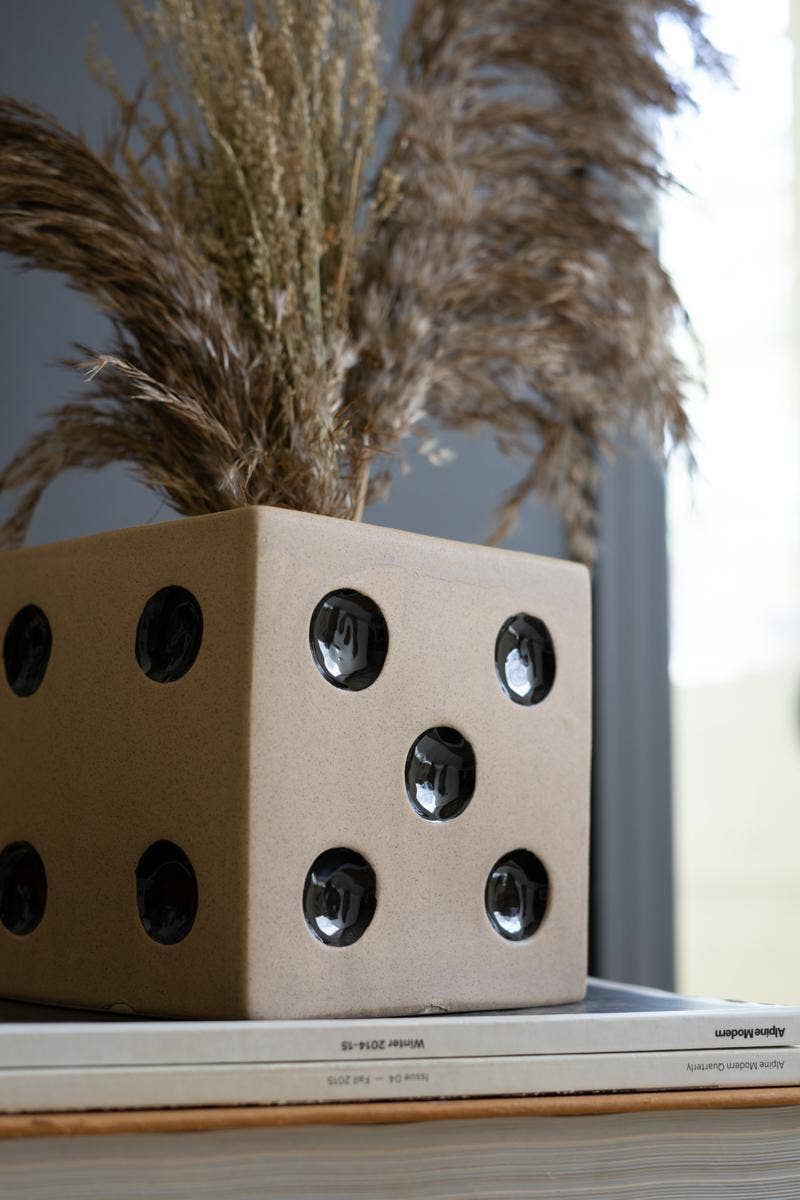 Add a touch of luck and style to your space with this ceramic dice vase! Perfect for a game room or Vegas-style lounge, this ceramic dice vase is a lucky find for displaying flowers in any room. It could also be used as a tissue holder.