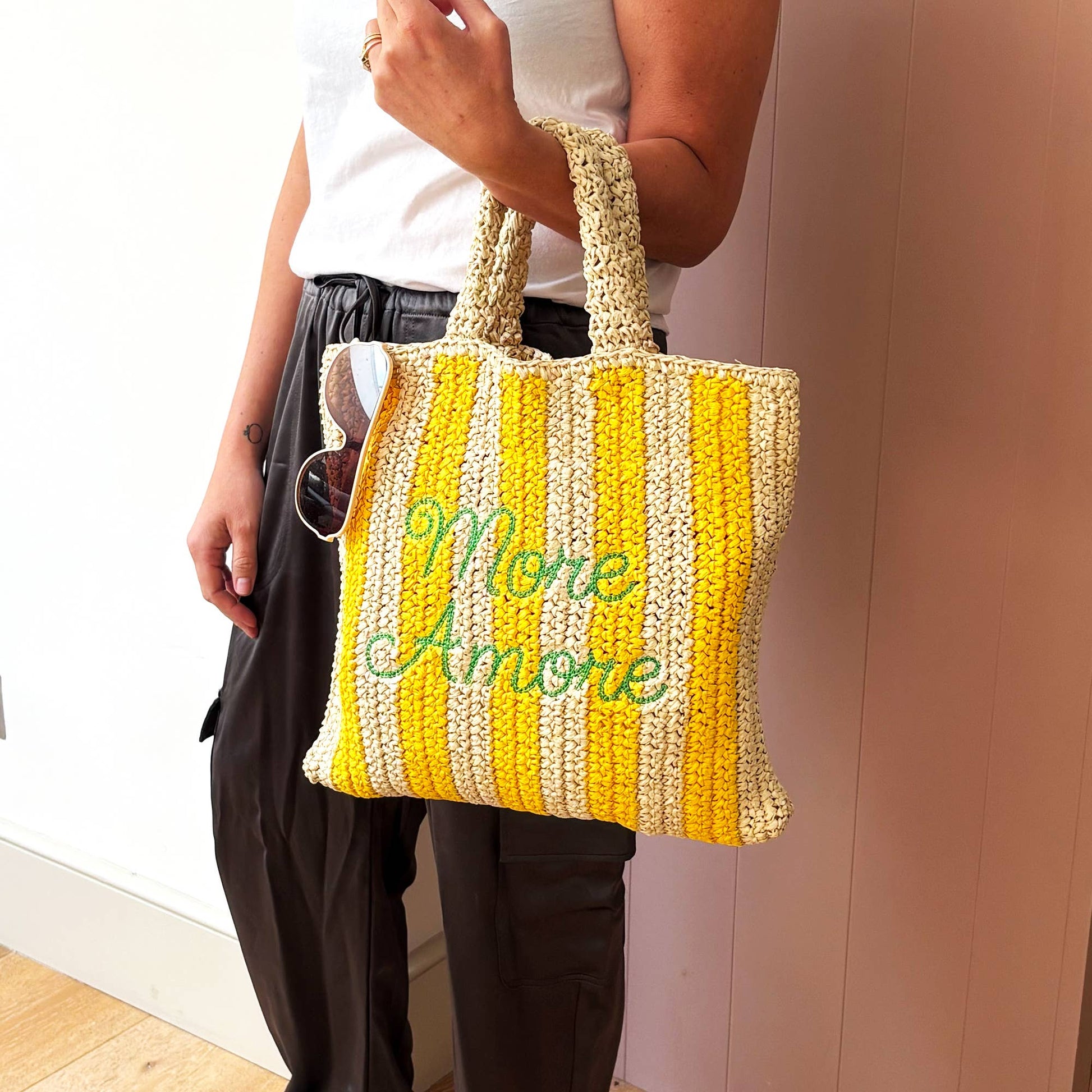 This stylish striped beach bag is the perfect companion for your beach trips or summer getaways. Ideal for summer weddings or as a thoughtful birthday gift, this embroidered tote combines style and functionality. Pack your essentials in style and make a splash. This bag is handmade with custom embroidery. This is the perfect bag for day to day and a day at the beach. Ideal for Shopping or a day at the Beach. This bag can be wiped clean with a damp cloth.