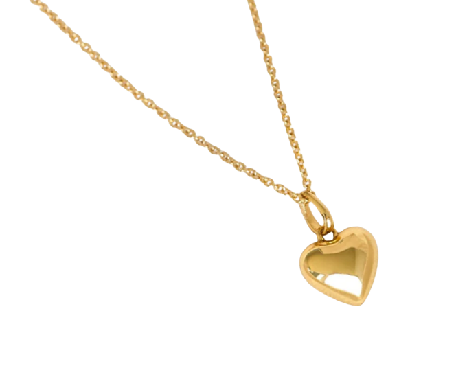 This petite heart necklace is a sweet, everyday staple featuring a delicate 5mm puffy heart on a soft titanium curb chain. Waterproof titanium with genuine 14K gold plating, it’s made to shine daily and layer beautifully. Finished with a 2" extender and secure lobster claw clasp.