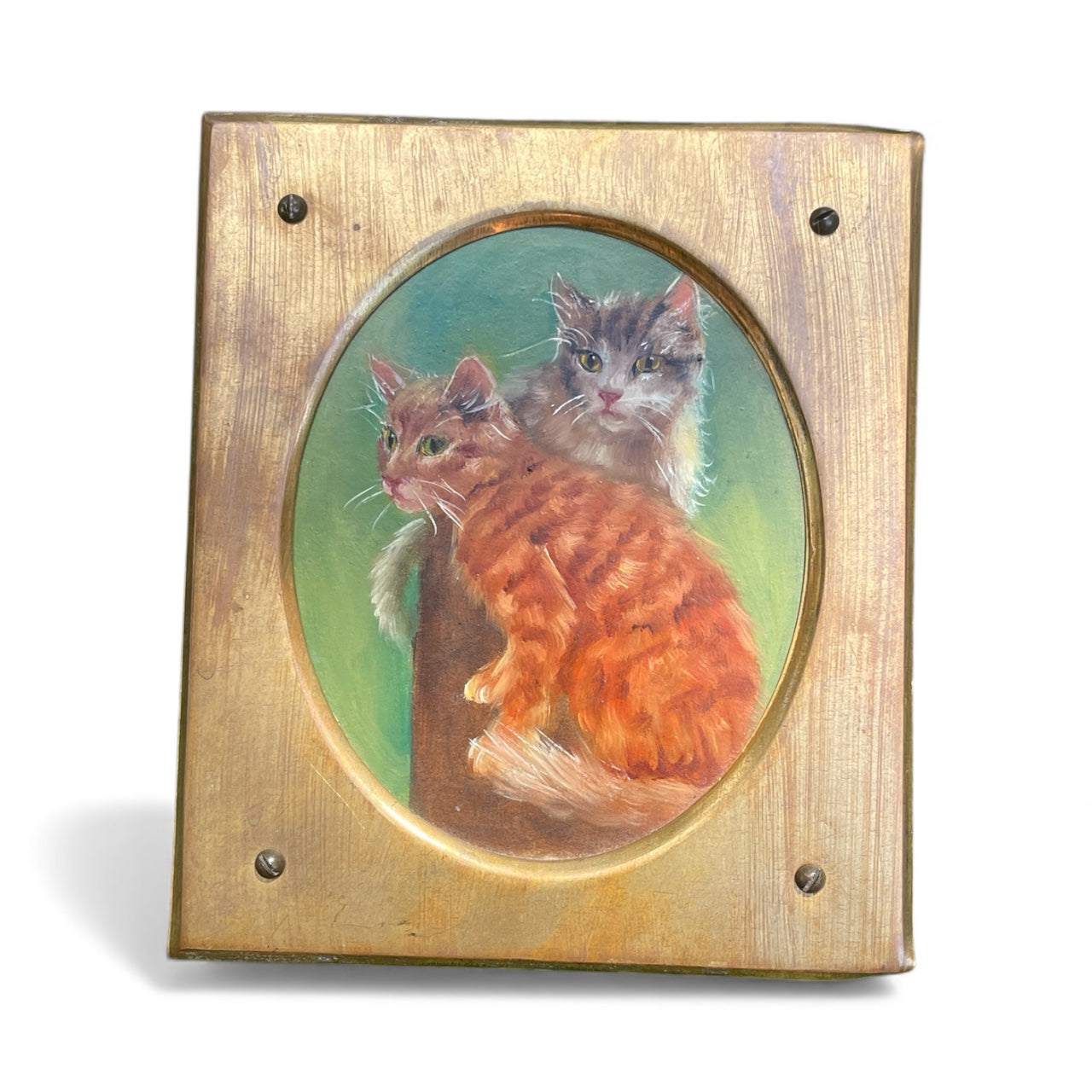 This original painting to two cats is darling. It's the perfect size to add to a gallery wall or a bookshelf. Although the artist is unknown, the detail is amazing.