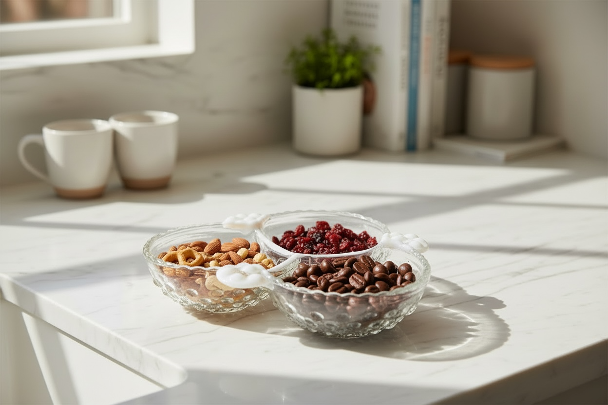 Vintage Fenton Opalescent Glass 3 Bowl Candy Dish
