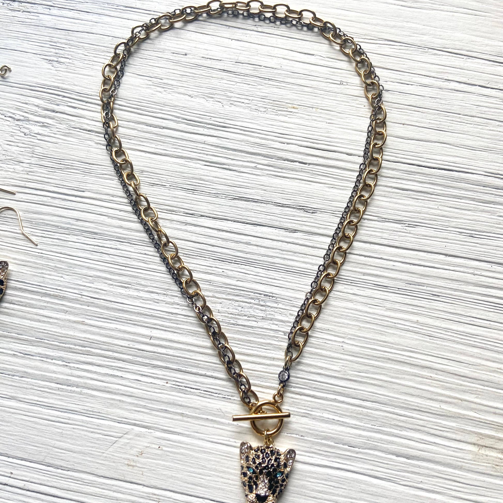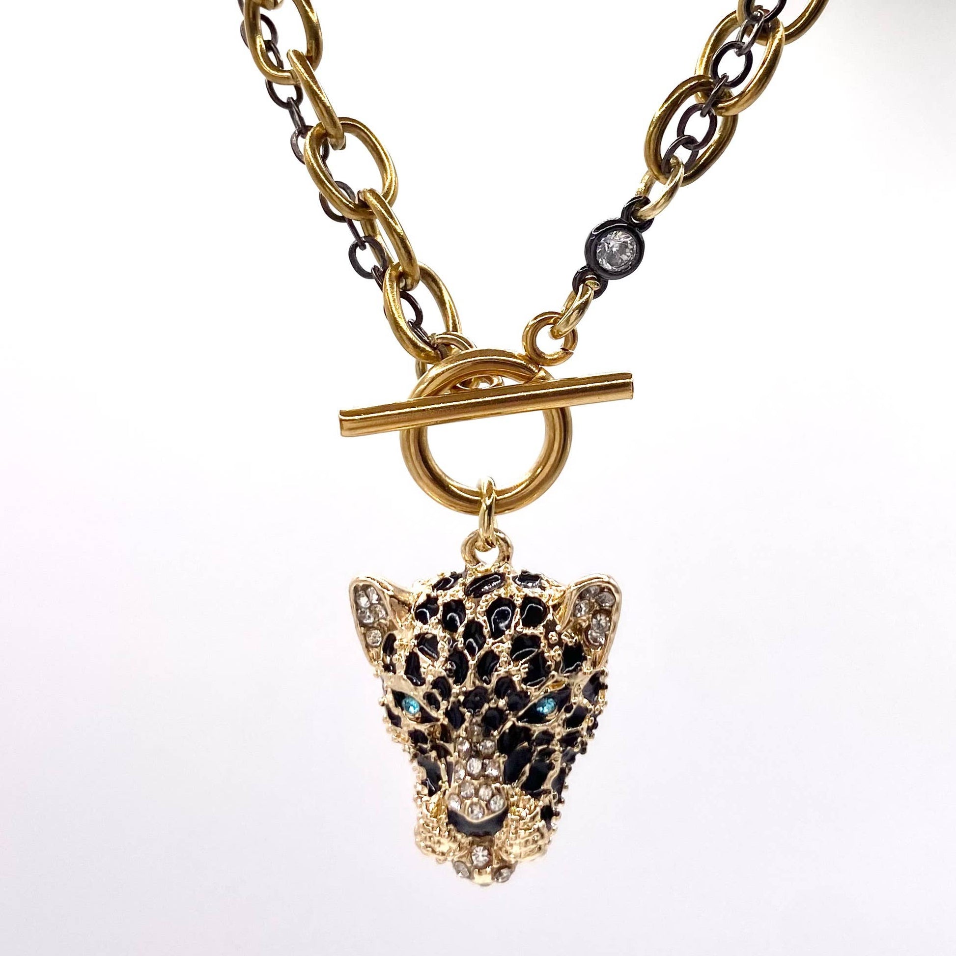 Unleash your wild side with this vintage inspired Cheetah necklace. Each piece is adorned with shimmering details, sleek black enamel, and sparkling crystal accents that capture light from every angle.